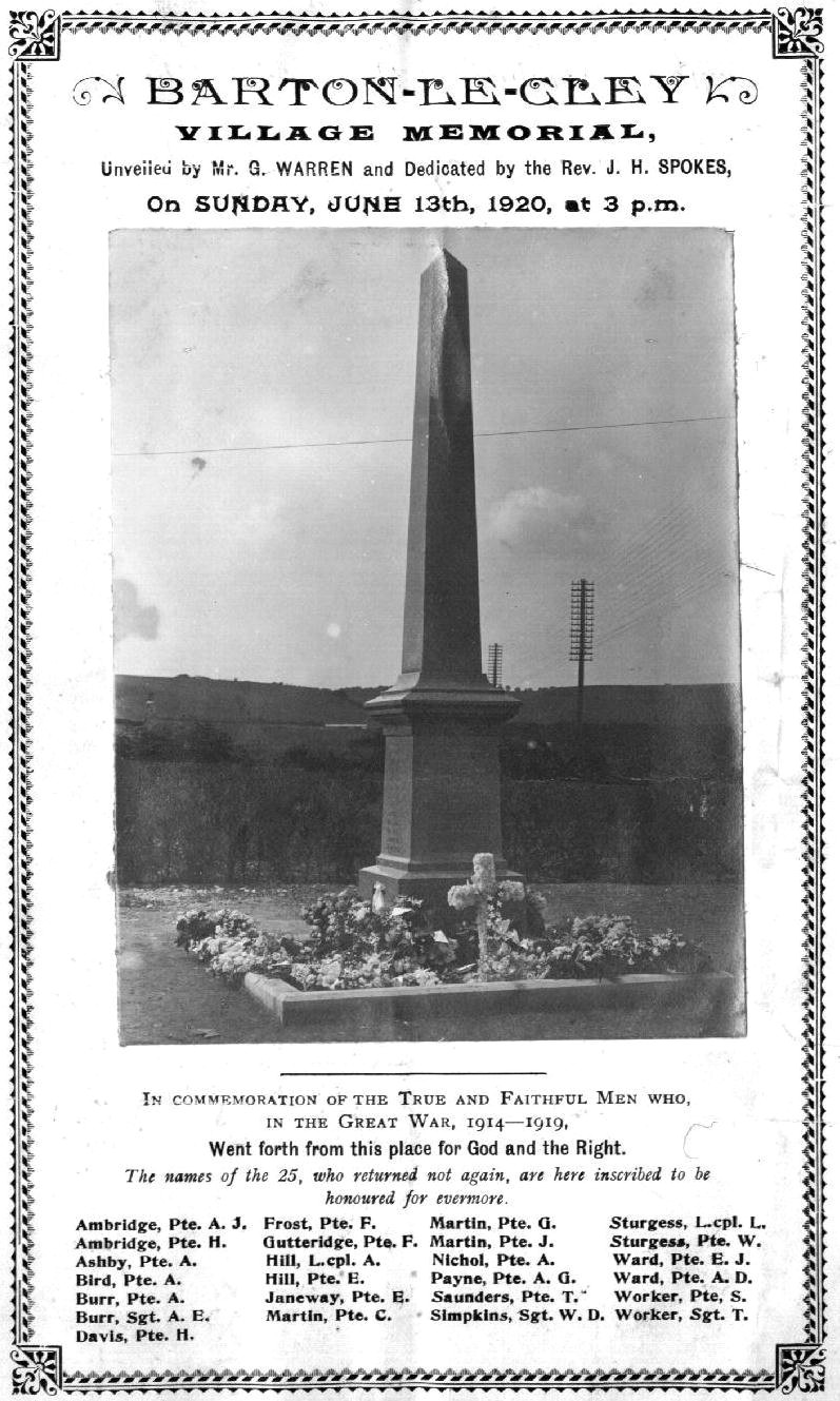 BARTON - War Memorial 1920