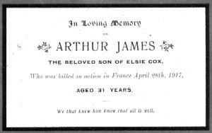 Tuseday 18th January 1916 in France. Son of Arthur and Mary Anne