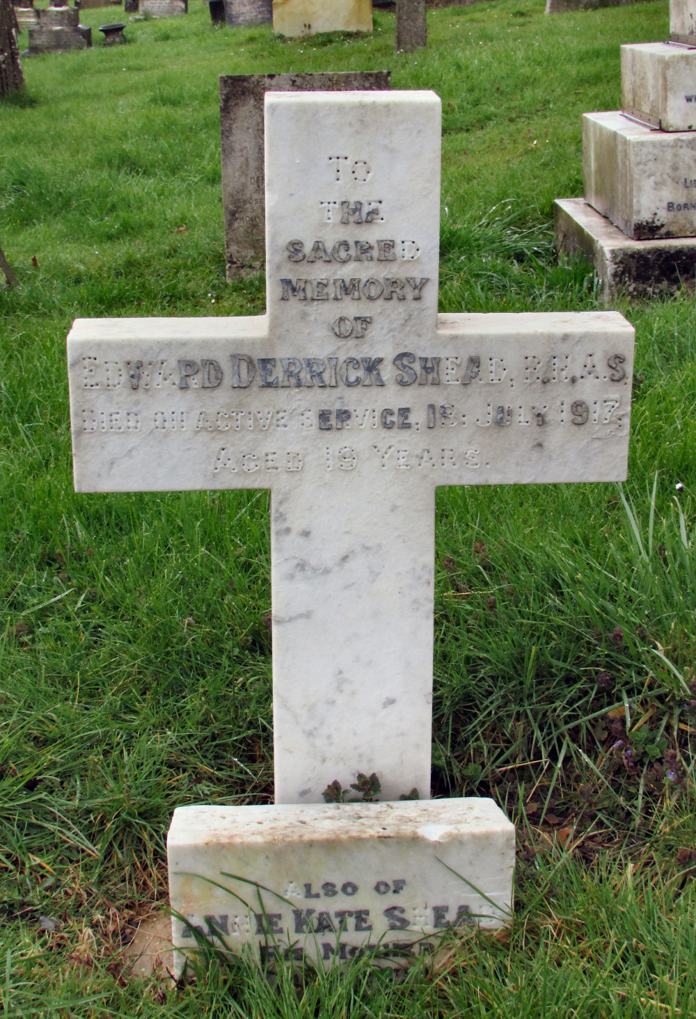 Air Mechanic 1st Class F/31785, H.M. Air Station (Cranwell, Central Depot and Training Establishment), Royal Naval Air Service. Died of pneumonia Wednesday 18th July 1917. Aged 19. Born 21st April 1898 [listed as 21st August 1897 on School Records] in Amersham, Bucks. Son of William and Annie Kate Shead, of 22, Clarendon St., Bedford. Admitted to Harpur Trust Boys' School, Bedford, 28th November 1910, son of William Shead, resident 18, Peel Street, Bedford, previously attended Winslow National School, left 3rd September 1912 to become a Light Cabinet Worker. Buried 24th July 1917. Grave F/3. 69.