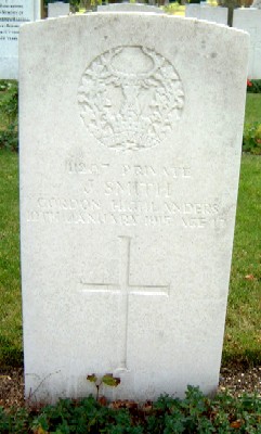 Private 11207, 2/6th Battalion, Gordon Highlanders. Died Sunday 10th January 1915. Aged 17. Enlisted Keith. Son of Mrs. M. R. Smith, of 26, South St., Aberchirder, Huntly. Grave I. 380.