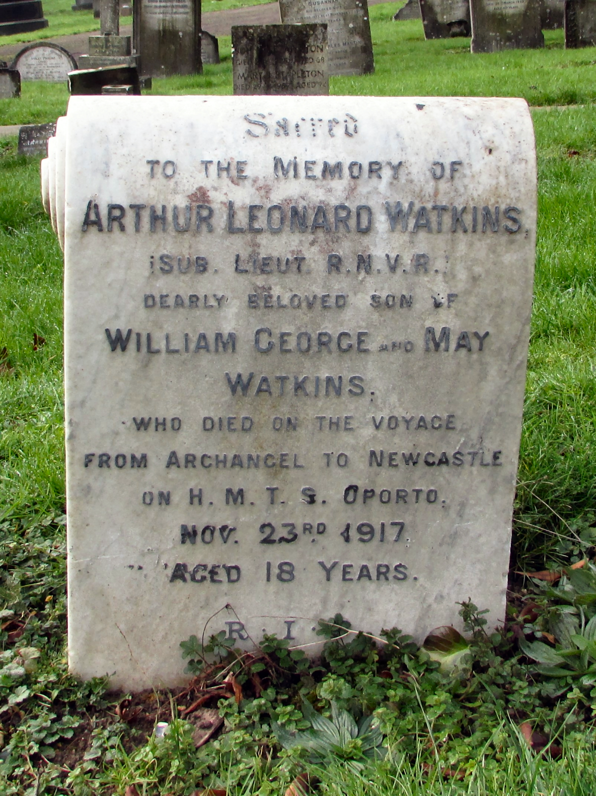 Temporary Sub-Lieutenant, H.M.S. "President," Royal Naval Volunteer Reserve. Died of Meningitis in Portugese S.S. "Porto" 24th November 1917; invalided home from Staff of P.N.T.O. Archangel. Aged 18. Buried 30th November 1917. Grave D.3. 44.
