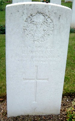 Private 2003, 5th Battalion, Gordon Highlanders. Died Saturday 16th January 1915. Aged 18. Born New Pitsligo, Aberdeenshire, enlisted Ellon, Aberdeenshire. Grave I. 359.