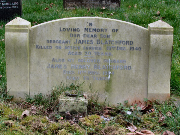 Sergeant 745212, Royal Air Force Volunteer Reserve. Killed on active service 19 December 1940. Aged 20. Son of James H. Blatchford and Mary Blatchford, of Bedford. Sec. R. Grave 734.