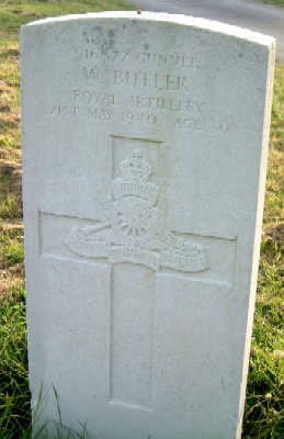 Gunner 916677, Royal Artillery. Died Tuesday 21st May 1940. Aged 30. Son of Mr. and Mrs. William Butler; husband of Maud Mary Butler, of Bedford. Section E. Grave 563.