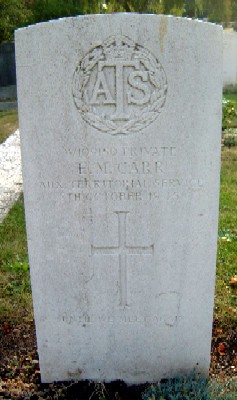 Private W/109150, Auxiliary Territorial Service. Died Monday 8th October 1945. Daughter of Arthur William and Emily Blanche Carr. Sec. 1. Grave 407.