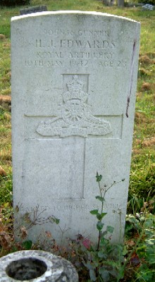 Gunner 905836, 551 Coast Regiment, Royal Artillery. Died Sunday 10th May 1942. Aged 23. Husband of Florence Eileen Joyce Edwards. of Bedford. Sec. M. Grave 19.
