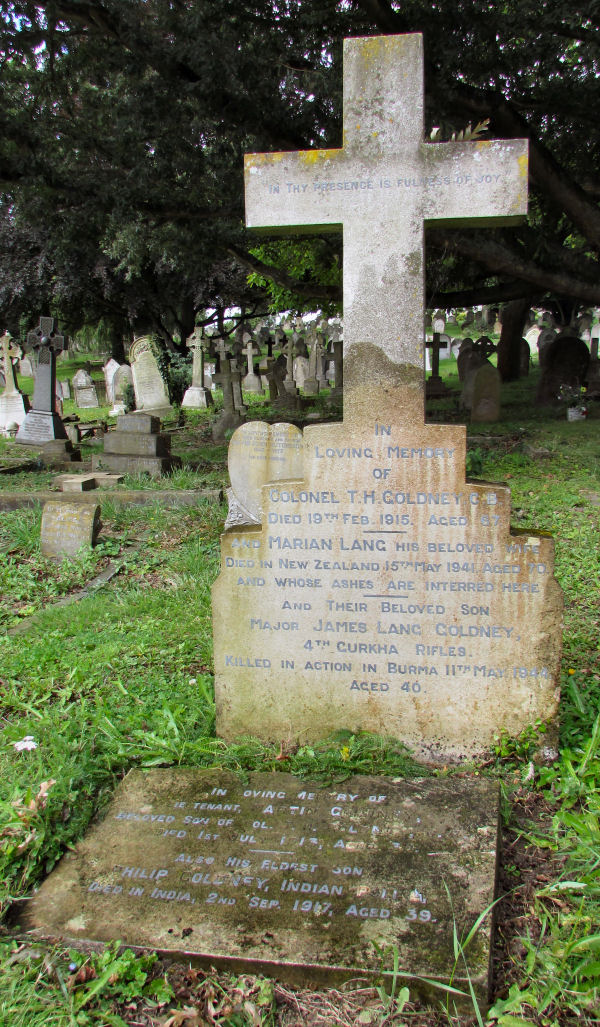 Major IA/150, 2nd Battalion, 4th Prince of Wales' Own Gurkha Rifles. Died 11th May 1944. Aged 39. Son of Colonel Thomas Holbrow Goldney, C.B., Indian Army, and F. Marion M. Goldney; husband of Daphne Elspeth Goldney. Buried in IMPHAL WAR CEMETERY, India. Plot 3. Row E. Grave 15. Commemorated on family grave in Bedford Cemetery, Bedford. Section K.4. Graves 75/80.