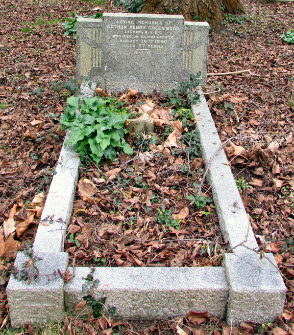 GREENWOOD Arthur Henry of 10 Durler-avenue Kempston Bedfordshire died 26 August 1940 on war service Administration Oxford 26 March to Sarah Ann Greenwood widow.