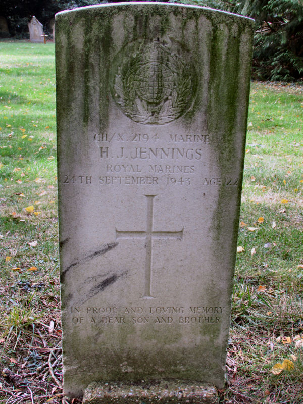 Marine CH/X 2194, Royal Marines. Died Friday 24th September 1943. Aged 22. Son of Rose Catherine Barcock, of Bedford. Sec. A. Grave 361.