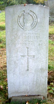 Trooper 5834643, 142nd (7th Battalion, The Suffolk Regiment) Regiment, Royal Armoured Corps. Died 31 October 1942. Aged 30. Son of William and Mary Griffiths; husband of Doris L. Griffiths, of Bedford. Sec. M. Grave 109.