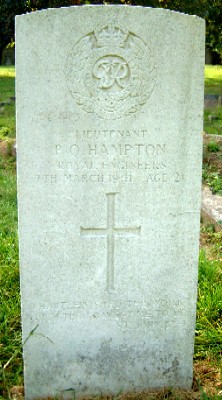 Lieutenant 93617, 286 Field Company, Royal Engineers. Died on Friday 7 March 1941. Age 21. Son of Capt. Cuthbert Qui Hampton and Ada Elizabeth Hampton, of Bedford. Sec. G.7. Grave 255.
