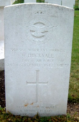 Warrant Officer 358388, Royal Air Force. Died Tuesday 29th September 1942. Aged 37. Son of Frederick and Annie Huckvale; husband of Alice H. E. Huckvale, of Bedford. Sec. I. Grave 317.