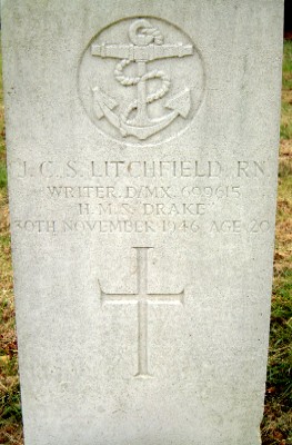 Writer D/MX 699615, HMS Drake, Royal Navy. Died Saturday Saturday 30th November 1946. Aged 20. Sec. N. Grave 185.