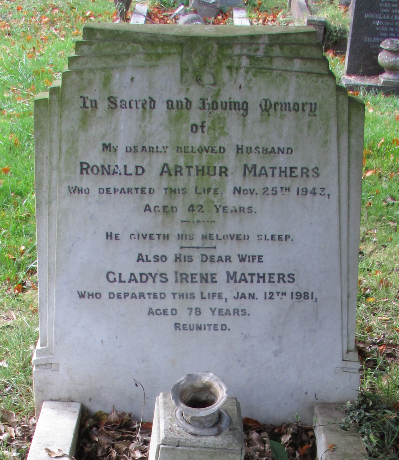 Corporal 2201170, Royal Engineers. Died Thursday 25th November 1943. Aged 42. Son of Frederick and Elizabeth Mathers; husband of Gladys Irene Mathers, of Bedford. Sec. R. Grave 99.