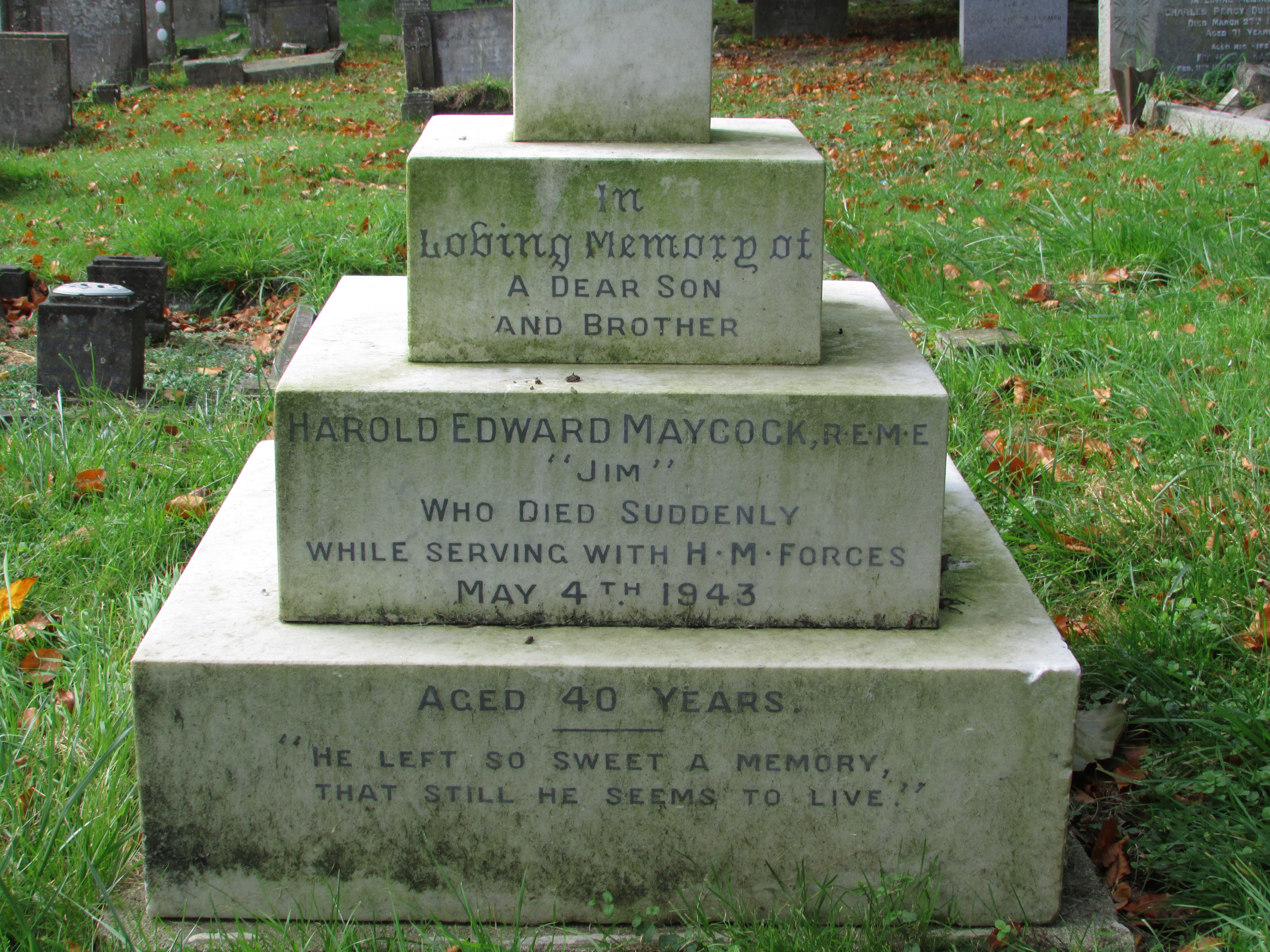 Craftsman 7584618, Royal Electrical and Mechanical Engineers. Died Tuesday 4th May 1943. Aged 40. Son of Mr. and Mrs. Harold Maycock, of Bedford. Sec. R. Grave 142.