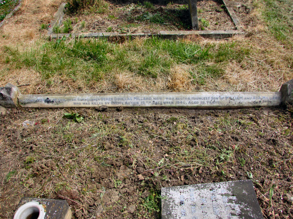 Gunner 915439, 187 Battery, 67 H.A.A. Regiemnt, Royal Artillery. Killed by enemy action between Thursday 12th and Friday 13th December 1940. Aged 19. Youngest son of William L. Millard and Ada Millard, of Bedford. Sec. L. Grave 931.