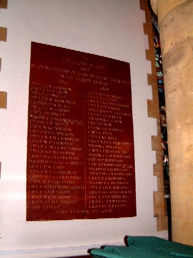 World War 1 memorial is affixed to the wall of the church on the