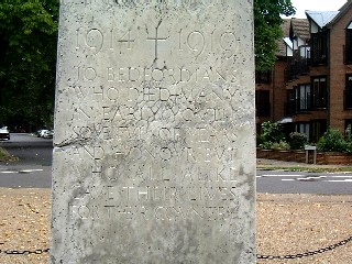 The Memorial stands on the Embankment beside the River Ouse. It takes the form of an allegorical figure of Justice armed in Crusader's armour, with a soldier's cloak and hands crossed on a two-handed sword. Beneath the figure is a chained dragon representing evil conquered. The base area has 8 bollards each with an animal head (lion) holding the chains. The memorial is made from Portland stone. The memorial cost £1,708 12s 6p. The sculptor was Charles Sargeant Jagger, the architect Mr George P Allen (FRIBA) and the builder was Mr G F Loughton. The memorial covers the First World War, Second World War and Korean War. There are no men named on it. It was first unveiled 20 July 1922 by Lord Ampthill.