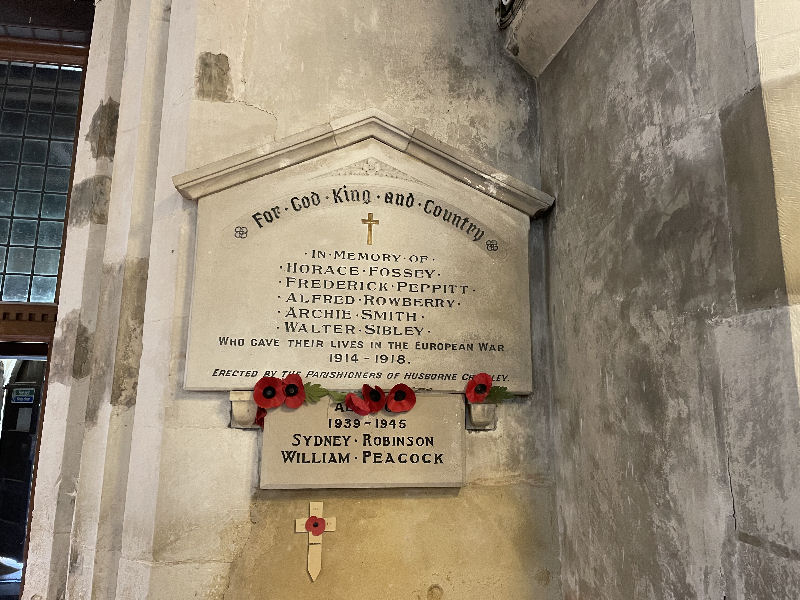 memorial is situated on the wall of St. James Church, Husborne Crawley.