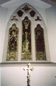 St Thomas's Church, Stopsley contains the First World War Memorial on the wall of the church and there is a dedicated three panelled, stained and painted glass window with three small top lights. The left hand window depicts St. Nicholas; the centre window is of Christ crucified; the right hand window shows St. Alban. The associated plaque is rectangular, brass, plate with borders of red tramlines, on a wooden board. All is secured to the wall by imitation bolts with the inscription in old English lettering in red and black. The Second World War memorial is in the form of a Book of Remembrance within a rectangular, glass fronted, oak case, containing a leather-bound book open to the centre pages. The case is on a window ledge, just below the pulpit. The window above this book is leaded, two-panelled clear glass.