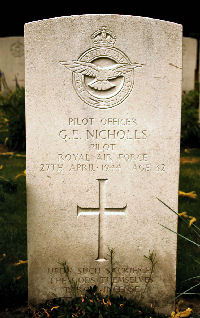 Pilot Officer (Pilot) 172425, 12 Squadron, Royal Air Force Volunteer Reserve. Died 27th April 1944. Aged 32. Son of James Edwin and Evelyn Nicholls, of Heamoor, Penzance, Cornwall; husband of Madeline Nicholls, of Heamoor. Buried in JONKERBOS WAR CEMETERY, Gelderland, Netherlands. Plot 24. Row F. Grave 4. |