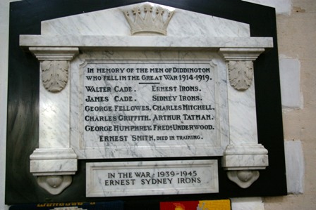 General Service and Victory Medals, was demobilised in 1919. Diddington,