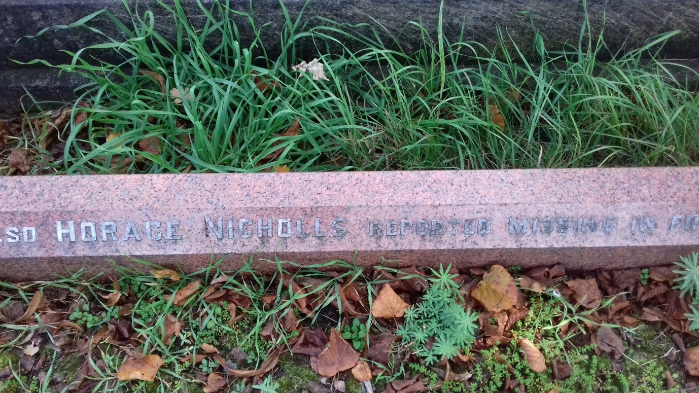 Commemorated on Ploegsteert Memorial, Panel 07. |