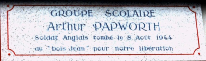 5885217 Private, 2nd Lincolnshire Regiment. Died 7 August 1944, age 24. Son of Walter & Louisa Papworth, of Ramsey Mereside; husband of Joyce Papworth. Vaudry Churchyard, Calvados, France. He has been honoured by the French who named a school after him in Vaudry, the village he died defending. Curiously he is buried in the local cemetery rather than with his 51 comrades at the war graves cemetery at St Charles De Percy.