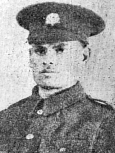 15169 Sergeant,, 4th Bedfordshire Regiment. Killed in action 23 April 1917. Lived at Harwich. Arras Memorial, Pas de Calais. Also listed on Pondersbridge memorial.