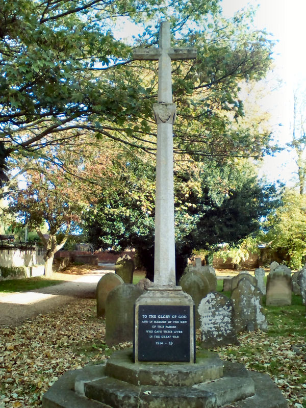 The West Lynn memorial is to be found within the churchyard of St. Peters Church. It takes the form of a plain cross mounted on a plinth with a three-stepped base. There are 25 names listed for World War 1 and 4 for World War 2. The memorial had been neglected which had caused thick lichen and moss to build up making it unreadable but has now been restored to make it readable. An extra 10 names were added at the time of restoration which are marked '*'. There are now 35 names for World War 1 and 4 names for World War 2. The names listed here have been sorted in alphabetical order within conflict.
