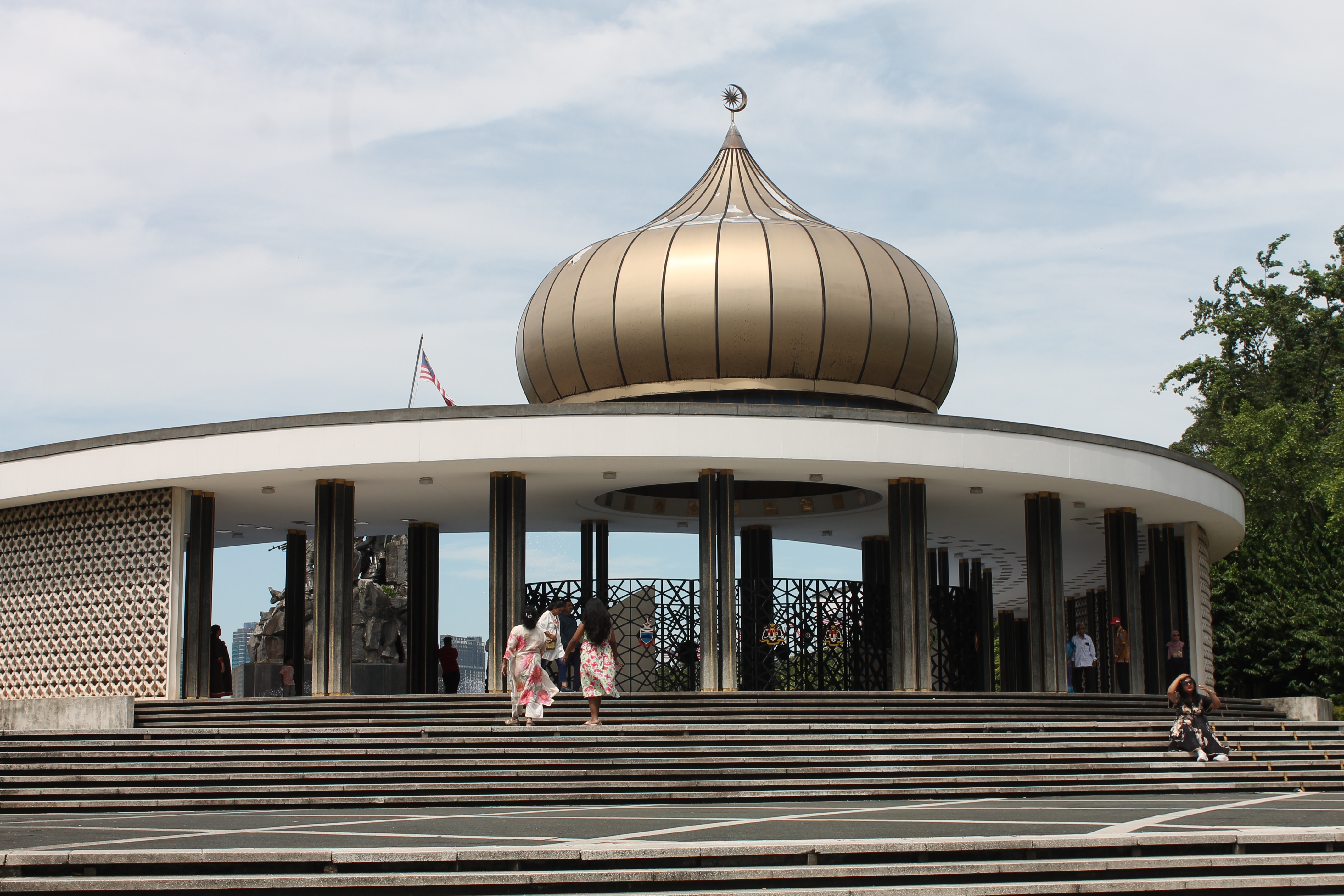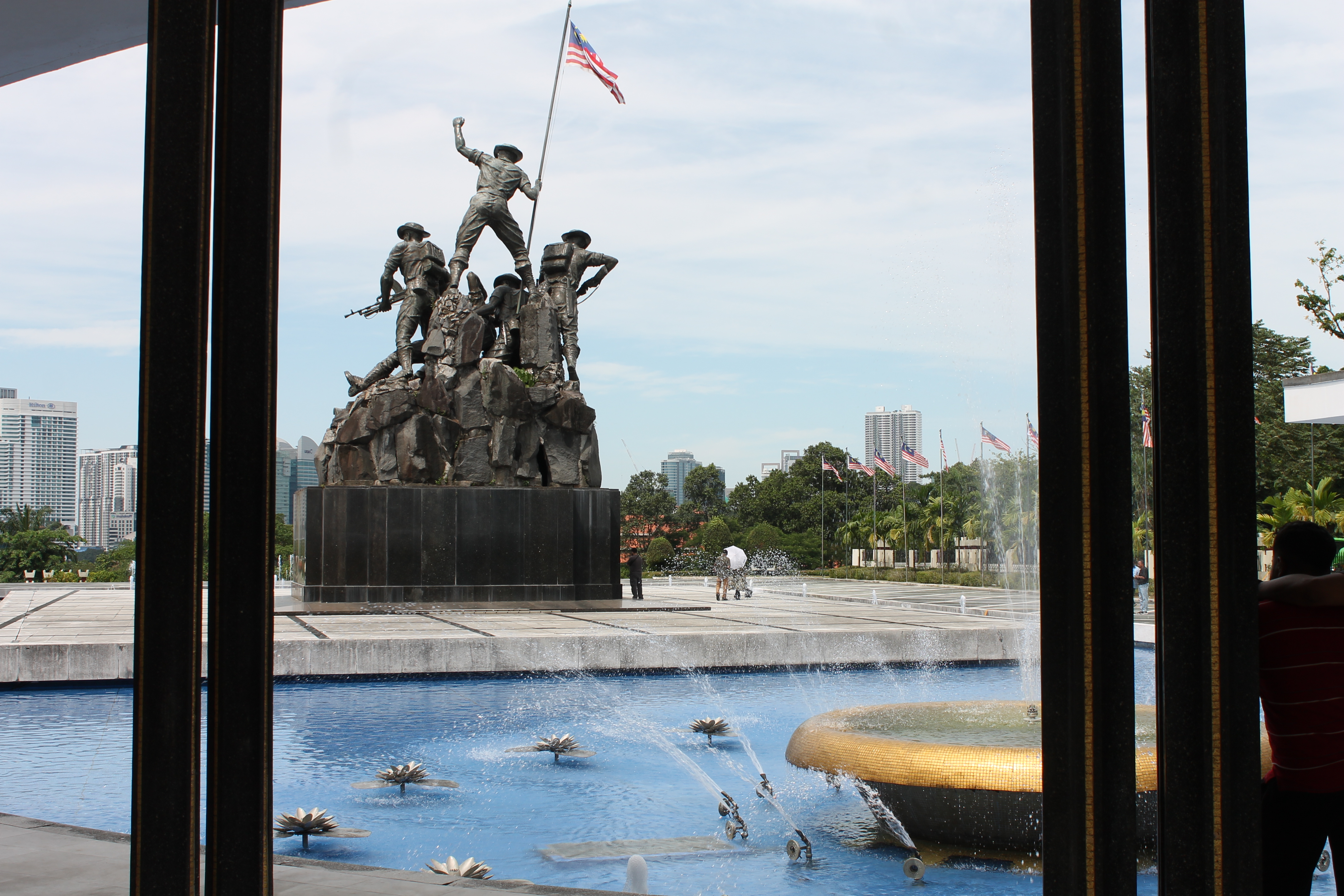 The idea for the construction of the National Monument was mooted by the then Prime Minister of Malaysia, YTM Tunku Abdul Rahman Putra Alhaj in 1963 to commemorate the warriors who died defending the sovereignty of the country. An area measuring 48,562 square metres facing the Lake Gardens was set aside for its construction. The monument complex encompasses five main components, the National Monument, fountains, pavilion, a war memorial and the surrounding gardens.