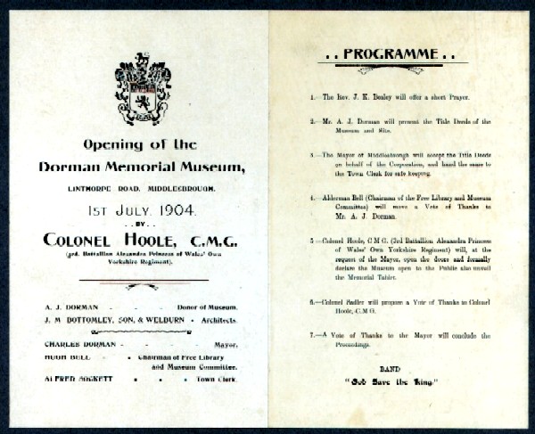 on 1st July 1904 by Colonel Hoole of the Yorkshire Regiment. The