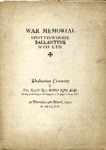 BALLANTYNE & CO LTD - MEMORIAL